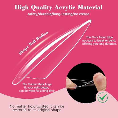 - أطراف أظافر جل طويلة مدببة، تأتي مع 500 قطعة من أطراف الأظافر الجل الناعمة، معبأة في علبة شفافة. الأظافر الصناعية مصنوعة من بلاستيك ايه بي اس عالية الجودة، وهي متينة وقوية، ولن تنثني أو تنكسر. مثالية لصالونات الأظافر وحرف فنون الأظافر المنزلية التي تصنعيها بنفسك