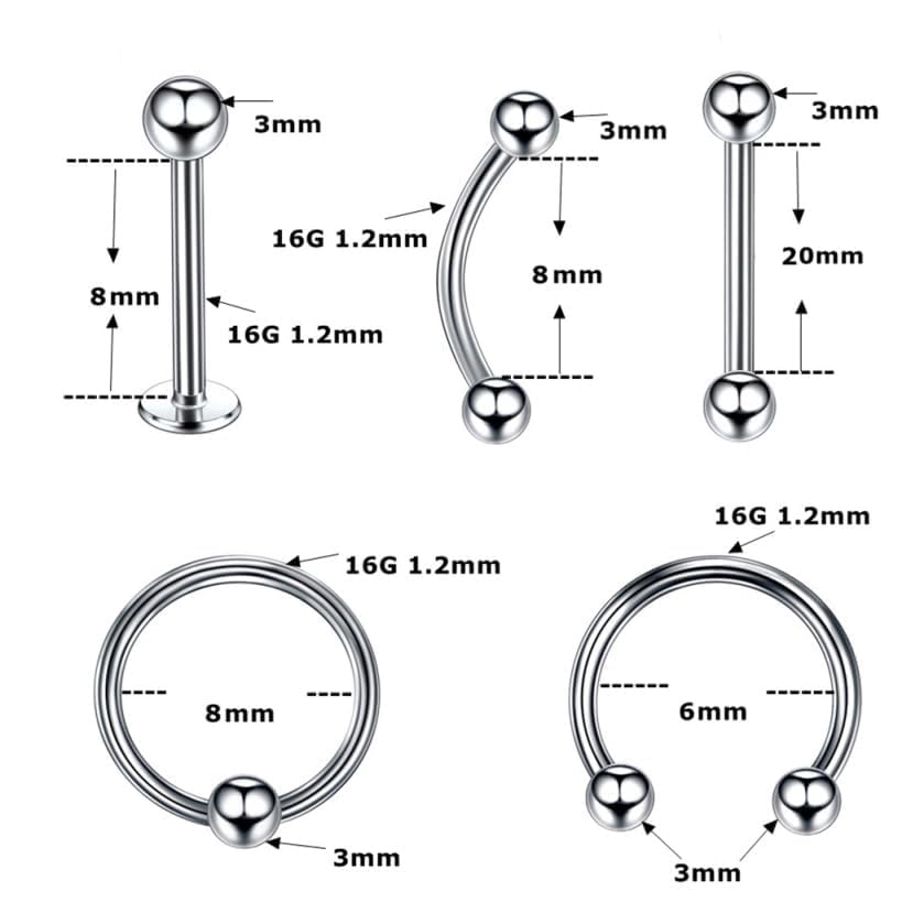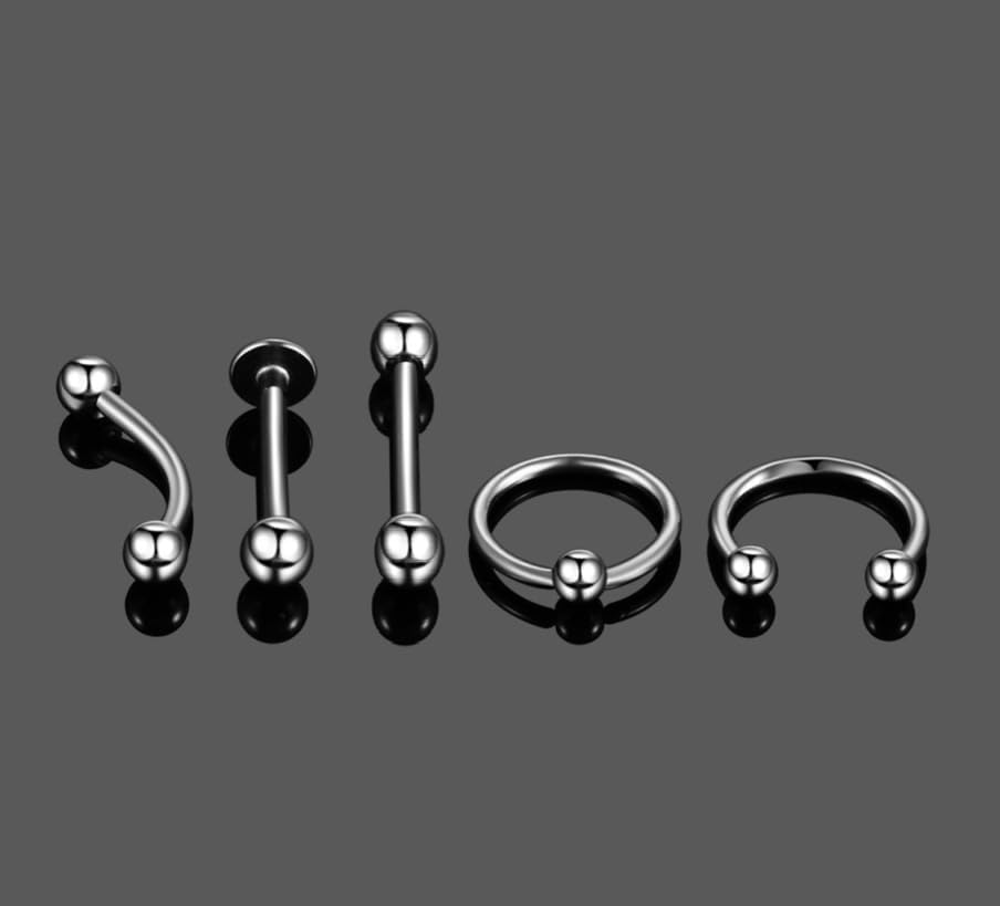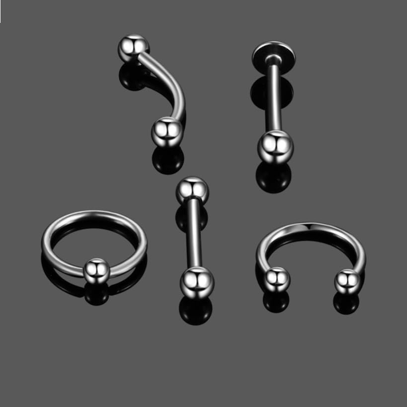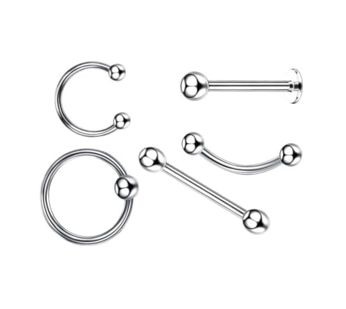 Generic - جيني مجموعة مجوهرات ثقب الجسم من 5 قطع، ستانلس ستيل، 16 غرام، 0.01 كجم