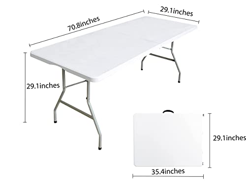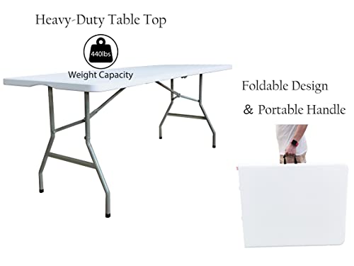 generic - جيني طاولة قابلة للطي مقاس 6 قدم × 30 انش طاولات بلاستيكية محمولة للاستخدام الداخلي والخارجي للنزهات والحفلات وتناول الطعام شديدة التحمل الى نصف ابيض