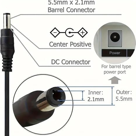 Generic - شاحن باور سبلاي بجهد 6 فولت وتيار 2 امبير ومحول طاقة، وصلة تيار مستمر، بلون أسود، 5.5 × 2.1 ملم