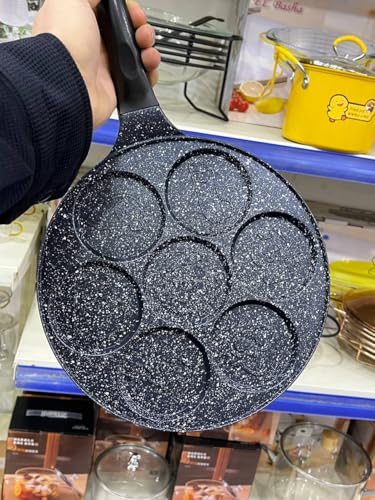 Generic - طاسة بان كيك بـ7 تجاويف وتصميم وجه مبتسم وطلاء مانع للالتصاق مع يد بلون أسود