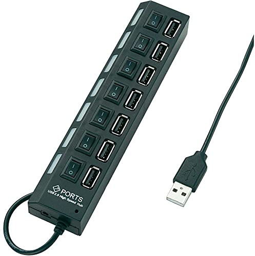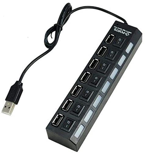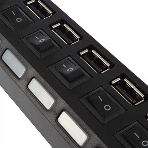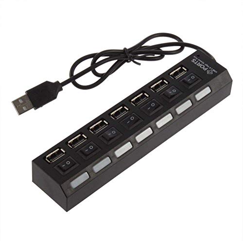 Generic - 7 منافذ محول موزع USB 2.0 مقسم للطاقة - زر تشغيل/إيقاف - مصباح ليد (اسود)