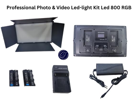 Generic - جيني مجموعة اضاءة فيديو LED 800، 3200 كلفن - 5600 كلفن، قابلة لاعادة الشحن مع بطاريتين وشاحن، بطارية بيشتجل وبشتجل كهربائي، جيمبال صغير دوار 360 درجة، كاميرا والجوال