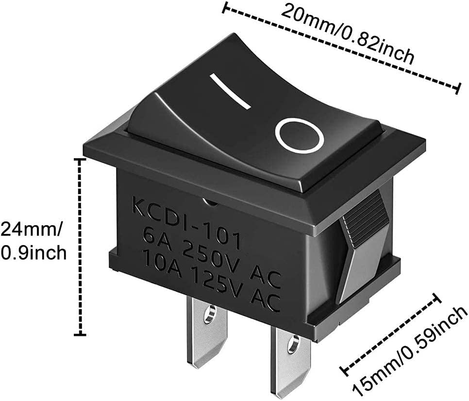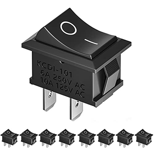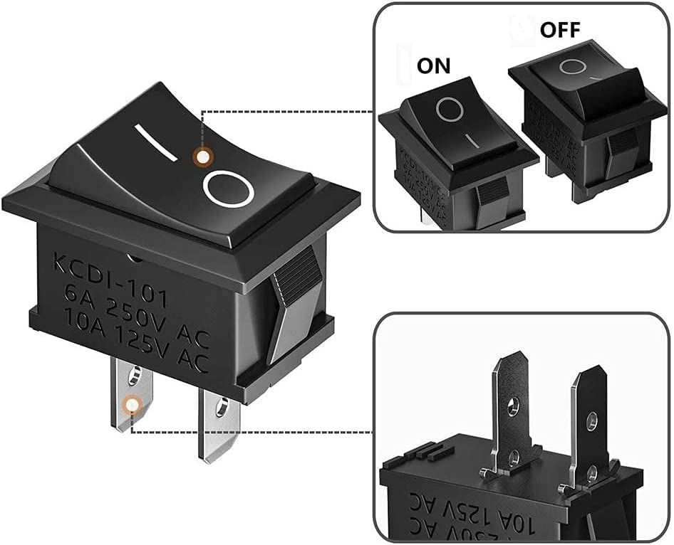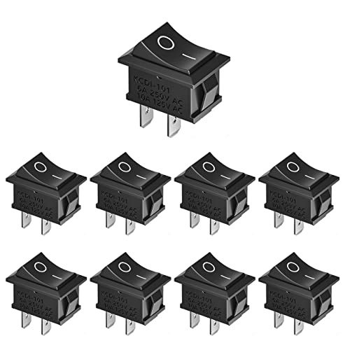 Generic - مفتاح تبديل صغير Spst للتشغيل والإيقاف بدبوسين ووضعين وزر ضغط مدمج، مفتاح قلاب للسيارة والقارب والأجهزة المنزلية، 9 قطع، لون أسود