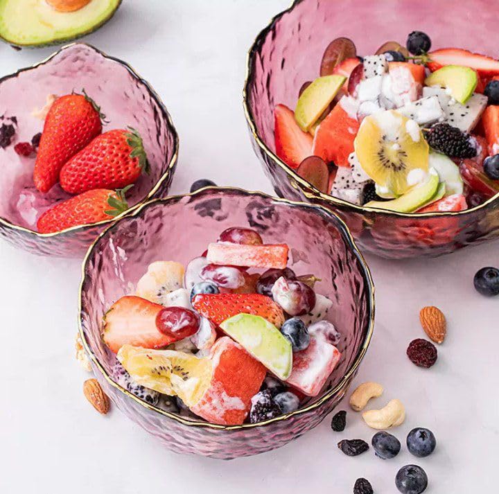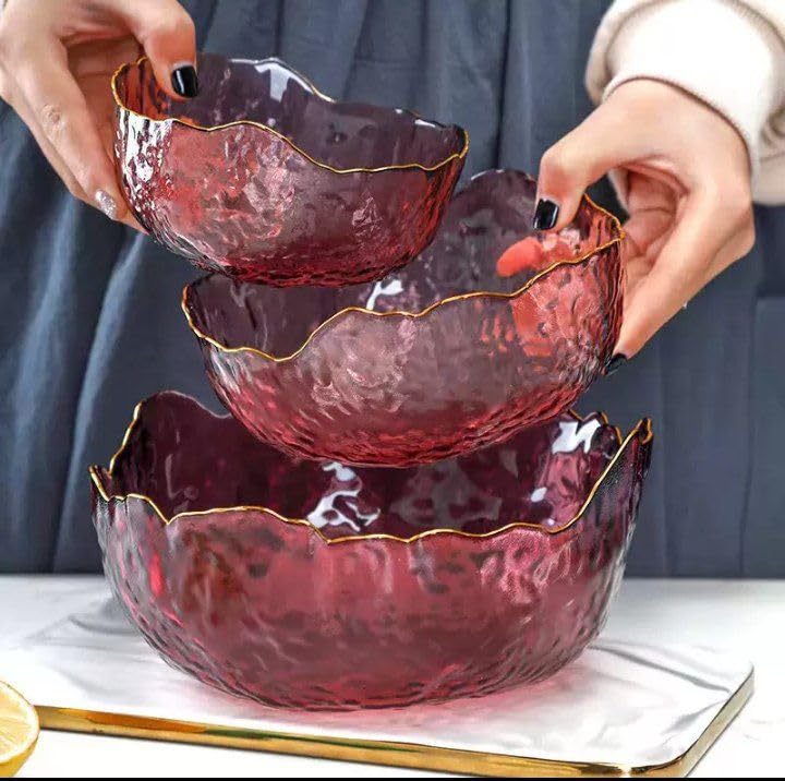 Generic - بولات تقديم زجاجية، طقم من 3 قطع، أطباق عميقة مزخرفة بحافة ذهبية من زين ايه، لون نبيتي