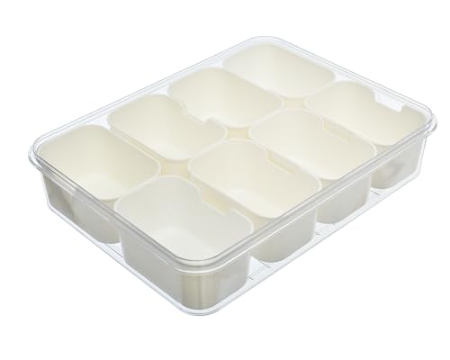 Spaceshoop - ثلاجة اكريليك محكمة الغلق مقسمة إلى ثماني بمقابض من البلاستيك وعلب تخزين للخضروات الطازجة 8×1 - بلون أبيض وشفاف