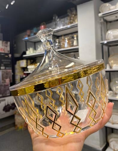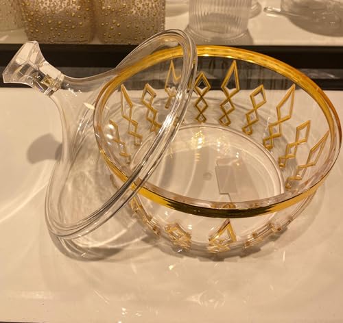 Generic - جيني بونبونير اكريليك مع لمسات ذهبية، وعاء تقديم شفاف مع غطاء للوجبات الخفيفة والمكسرات والحلويات. بي