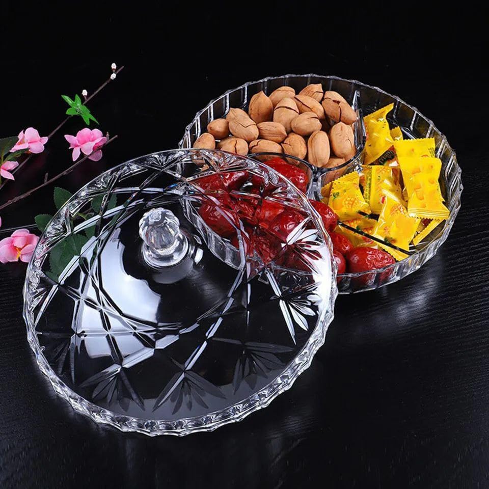 Generic - طبق اكريليك مقسم للوجبات الخفيفة مع غطاء، أقسم للمكسرات والحلوى والكوكيز (بكار)