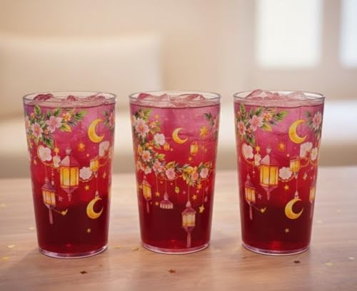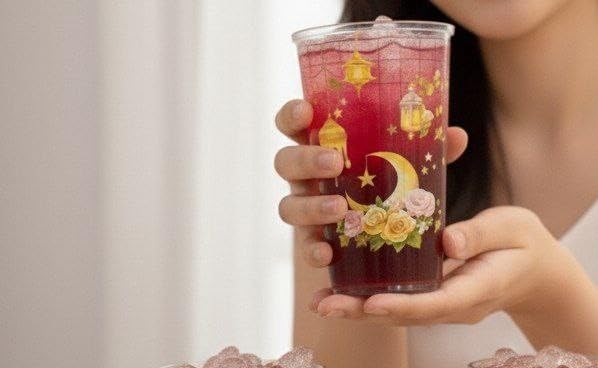 - تصميم زخرفي: يتميز بزخارف قمر ونجوم ساحرة مع ديكورات زهور وفوانيس أنيقة، مما يخلق جمالية مبهجة واحتفالية مثالية للاستخدام اليومي أو المناسبات الخاصة