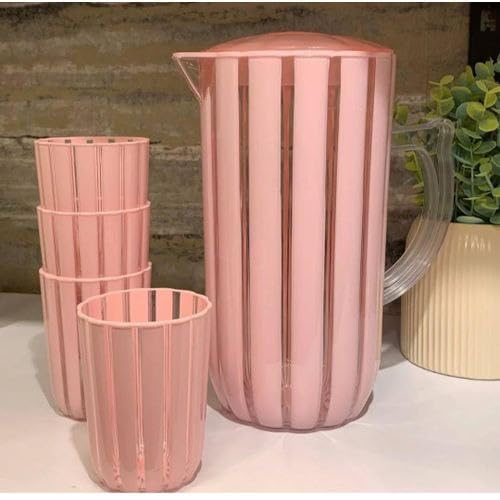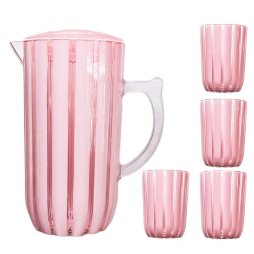 Generic - طقم إبريق اكريليك مع 4 أكواب، بينك، سعة 2600 مل، مجموعة مشروبات من 5 قطع مع غطاء شفاف للمياه والعصائر