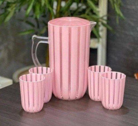 • طقم مشروبات كامل: تتضمن مجموعة أباريق الأكريليك المكونة من 5 قطع إبريق كبير بسعة 2600 مل و4 أكواب مطابقة، مثالية لتقديم المياه والعصائر والمشروبات المنعشة الأخرى للعائلة والضيوف
