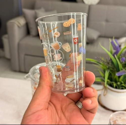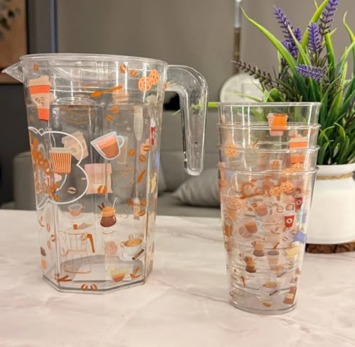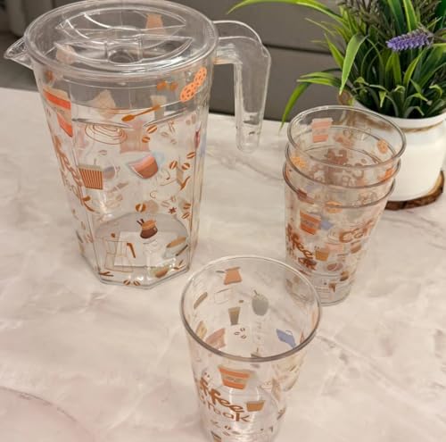 Generic - طقم شفشق من الأكريليك مع 4 أكواب، بتصميم مستوحى من القهوة، طقم أكواب شفاف للعصائر والماء، طقم من 5 قطع
