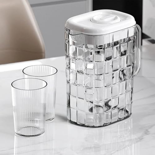 - مجموعة أنيقة: تتضمن مجموعة إبريق الأكريليك هذه إبريق ماء جميل مع غطاء آمن وكوبين شرب متطابقين، مثالي لتقديم المشروبات على طاولة الطعام