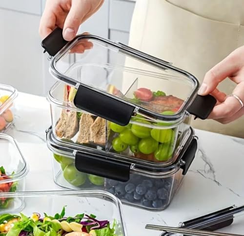 - تصميم قابل للتكديس: مجموعة حاويات تخزين الطعام القابلة للتكديس 3 في 1 مع مقابض مريحة على كل جانب لسهولة الرفع والحمل، مثالية لزيادة مساحة الثلاجة