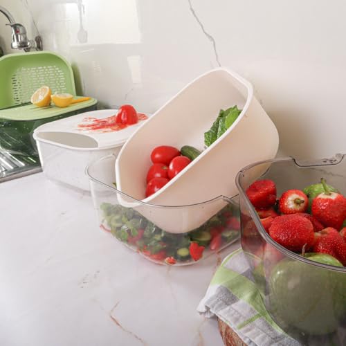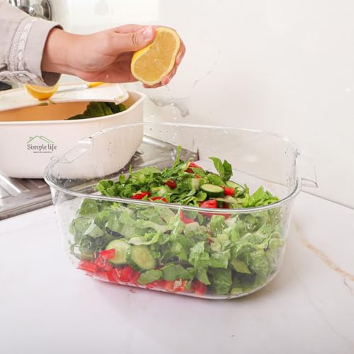Generic - جيني طقم اوعية سلطة اكريليك مع مصفاة ولوح تقطيع، وعاء تحضير بلاستيكي شفاف متعدد الاغراض للمطبخ مع سيليكون