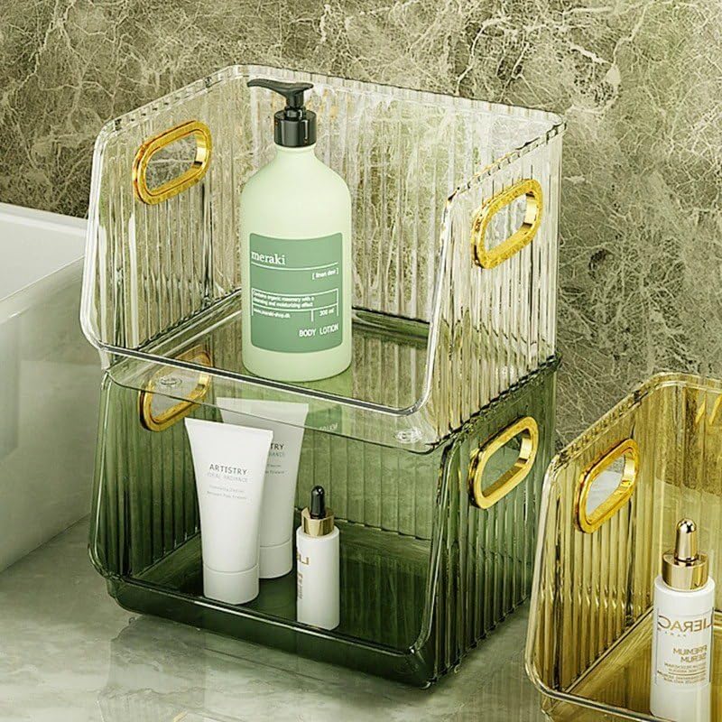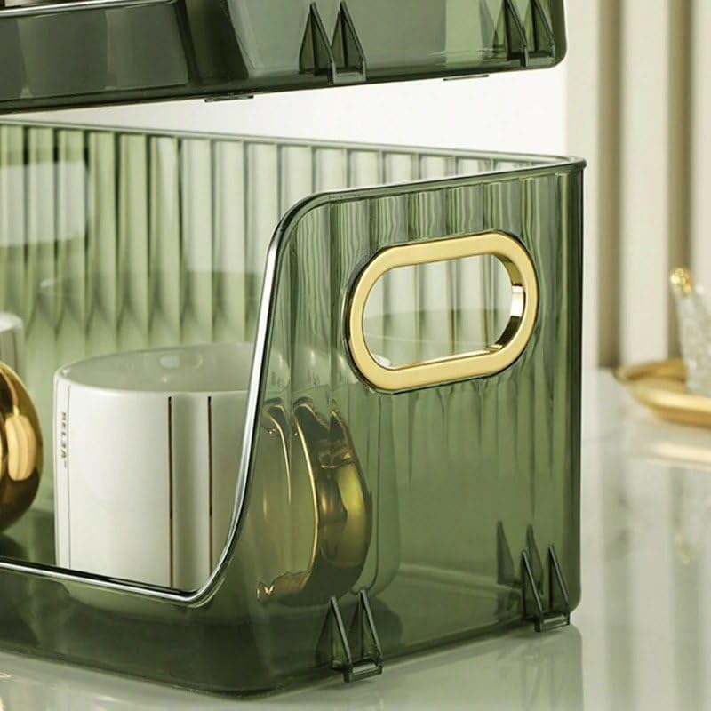 - تصميم متعدد الاستخدامات: منظم متعدد الأغراض مناسب لتخزين المطبخ أو تنظيم أدوات الزينة أو الاستخدام المنزلي العام مع مقبض مريح بلون ذهبي