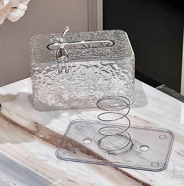 - هيكل شفاف: يسمح لك التصميم الشفاف بمراقبة مستويات المناديل في لمحة ويمتزج بسلاسة مع أي نمط داخلي أو نظام ألوان
