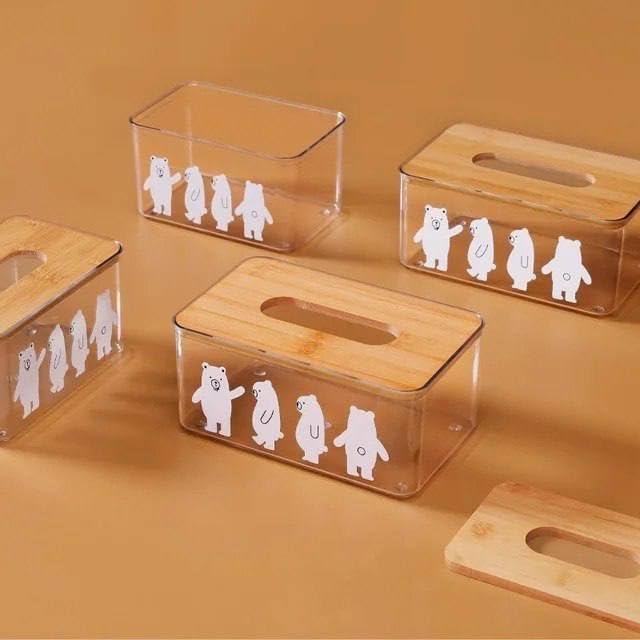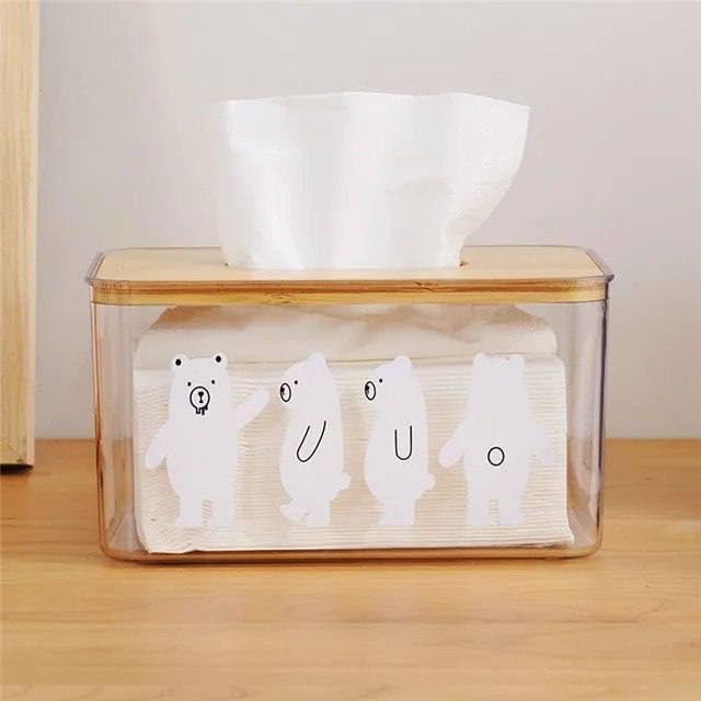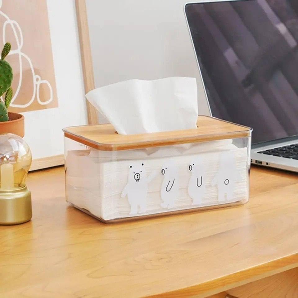 Generic - علبة مناديل اكريليك مع غطاء من البامبو، شفاف