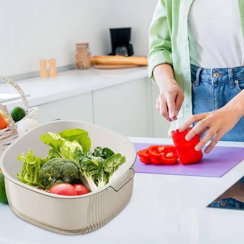 - مزايا عملية: تصميم مصفاة مدمج يتيح سهولة التصريف أثناء غسل الخضروات والفواكه، مما يساعد على تقليل هدر المياه.