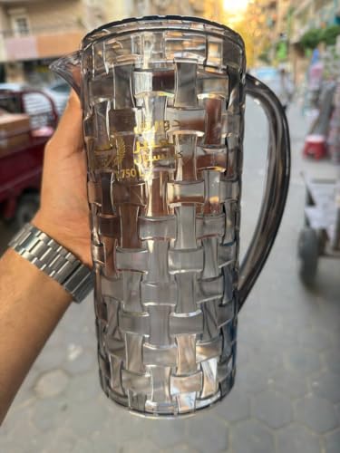 Generic - جيني ابريق مياه اكريليك مع مقبض، شفشق بلاستيك شفاف مقاوم للكسر، سعة 1.8 لتر، تصميم باسكيت ويف