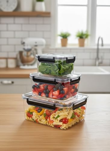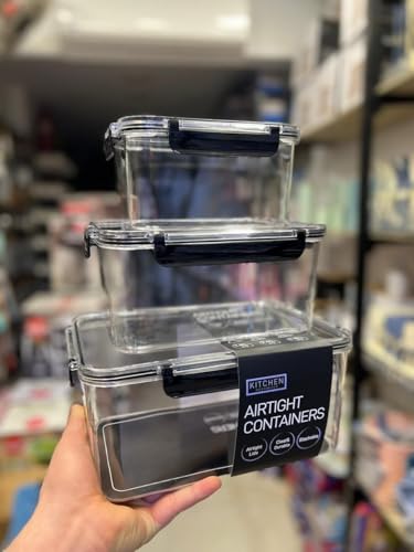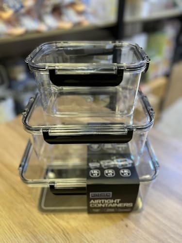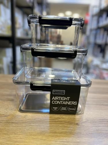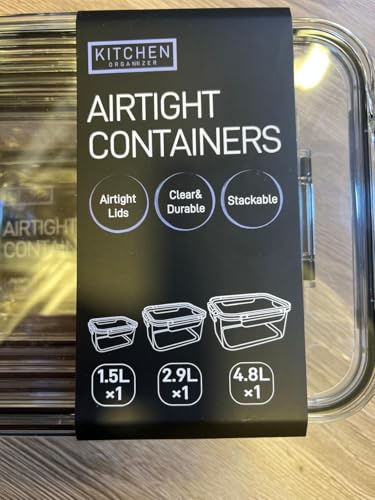 Generic - جيني مجموعة حاويات تخزين الطعام محكمة الغلق، بلاستيك شفاف مع اغطية قفل، تصميم قابل للتكديس، مجموعة من 3 قطع (1.5 لتر، 2.9 لتر، 4.8 لتر)، لتنظيم الثلاجة.