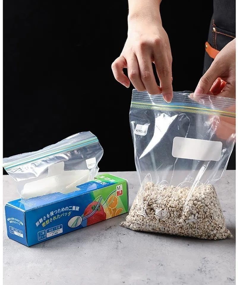 - ✅ (إحكام الإغلاق) ستكون تلك الأكياس فوق العادة، فهي تصلح للفريزر والميكروويف وتحتوي على مكان مُخصص لكتابة اسم الصنف، بفضل قوة الخامة المتينة التي تجعلها غير قابلة للقطع.