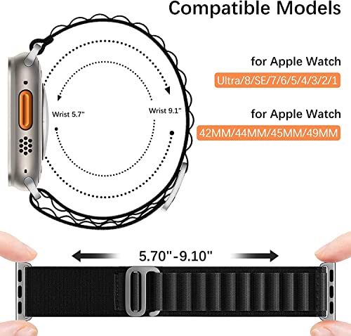 Generic - حلقة الباين لساعة آبل 49 ملم 45 ملم 44 ملم 42 ملم، حلقة نايلون منسوجة مع خطاف جي رياضي، متوافقة مع سوار اي-ووتش سلسلة الترا 8 7 6 5 4 3 2 1 SE - أسود