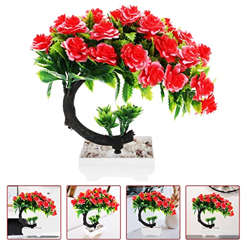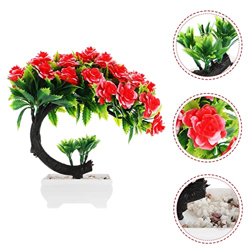 Generic - شجرة بونساي صناعية، أزهار فاوانيا صناعية في أصيص، نباتات صناعية صغيرة داخلية، ديكور للمنزل والطاولة والمكتب ورف الحمام