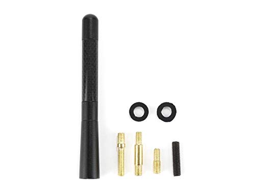 AUTO SNAP - هوائي سيارة سباركو ASP_007 4.7 بوصة من ألياف الكربون الألومنيوم هوائي راديو AM/FM مع مسامير (أسود)