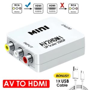 - توافق واسع: يربط أجهزة RCA (الصوت والفيديو) مثل جهاز تشغيل ألعاب الفيديو الرقمية ومشغلات نظام الفيديو المنزلي VHS ومشغلات أقراص DVD بشاشات HDMI.