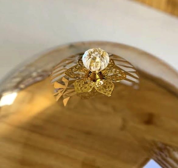 - تصميم أنيق: طبق تقديم دائري من الخيزران مع غطاء قبة أكريليك شفاف، يتميز بفيونكة ذهبية مزخرفة ومقبض كريستالي لعرض راقي