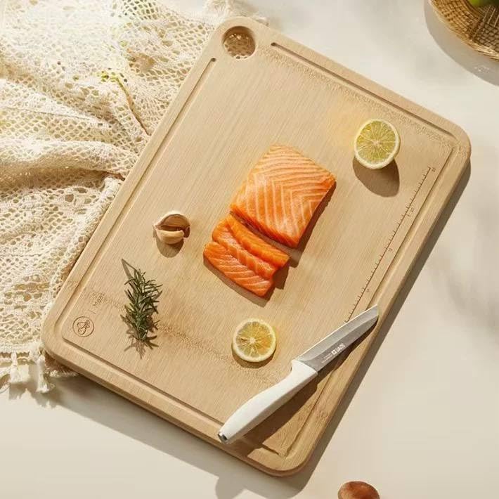 - سطح مناسب للسكين: سطح الخيزران الناعم لطيف على شفرات السكين مع توفير منطقة قطع ثابتة وغير قابلة للانزلاق تقاوم الخدوش وتحافظ على مظهرها