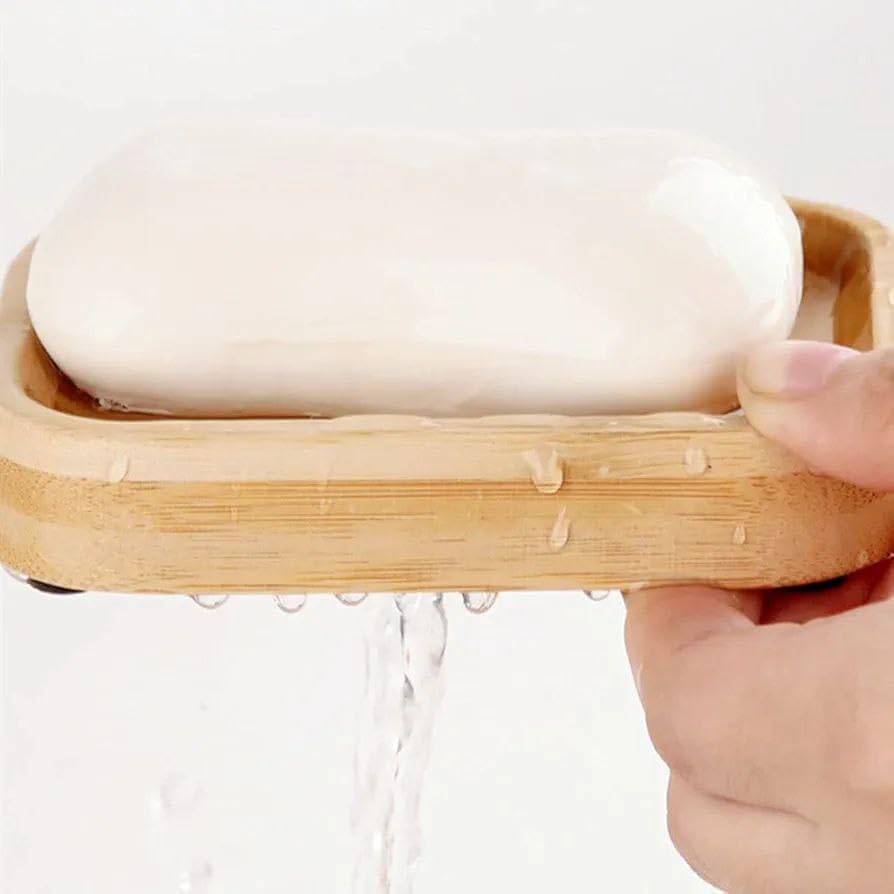Generic - طبق صابون من الخيزران مع تصريف المياه، تصميم من الخشب الطبيعي، ملحق حوض الحمام