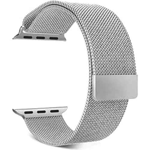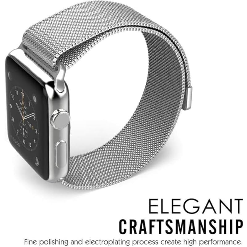 Generic - سوار ساعة ذكية مقاس 38/ 40 ملم، بتصميم حلقة ميلانيز من الفولاذ المقاوم للصدأ مع قفل مغناطيس قابل للتعديل لساعات اي ووتش سلسلة 4 و3 و2 و1، لون فضي