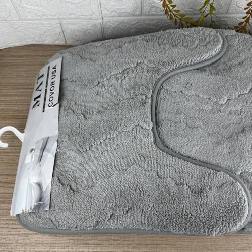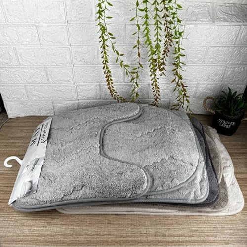 Generic - جيني طقم دواسات حمام، رمادي، خامة ناعمة ومريحة، تصميم بسيط وانيق، 3 قطع