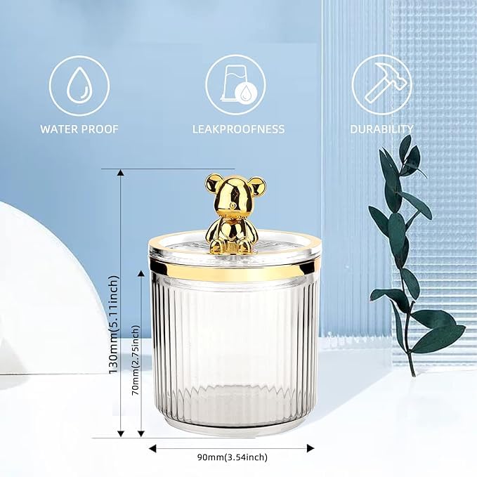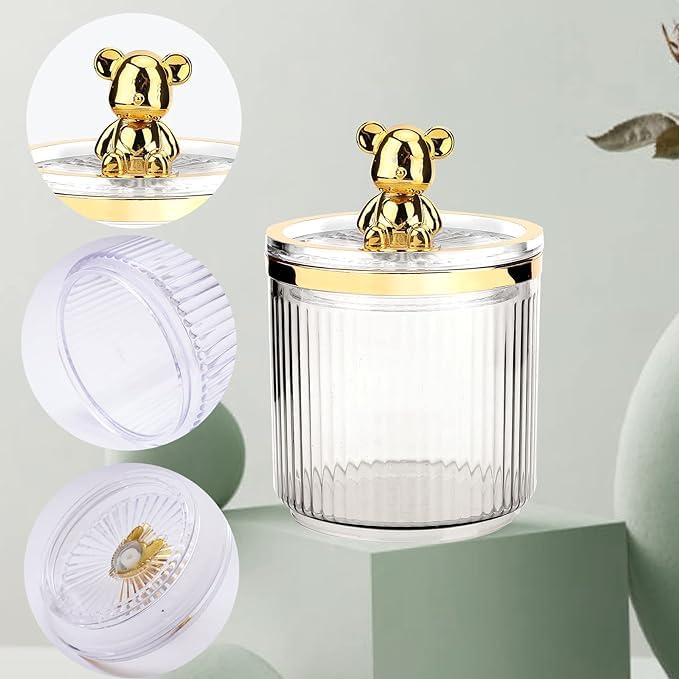 Generic - صندوق تخزين اكريليك على شكل دب، حامل وسادة قطنية للمكياج في الحمام للمسحة القطنية وعلبة مجوهرات وأعواد الأسنان ألوان متعددة