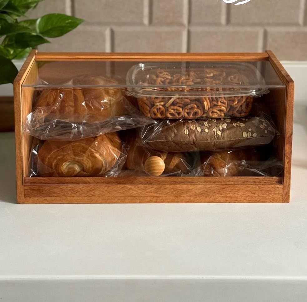 - صندوق خبز أنيق: تم تصميم هذا الصندوق الخشبي الأنيق المزود بغطاء اكريليك لتخزين وعرض المعجنات والخبز وغيرها من المخبوزات.