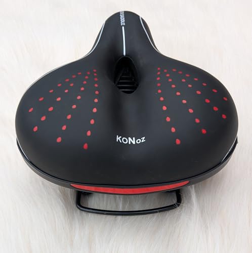 - 【ناعم وغير قابل للانزلاق 】. مقعد الدراجة المريح مبطن بإسفنج ميموري فوم سميك وواسع الكثافة والسطح مصنوع من جلد PVC غير قابل للانزلاق ومقاوم للاهتراء. مثالية لركوب الدراجات الطويلة المريحة للرجال والنساء