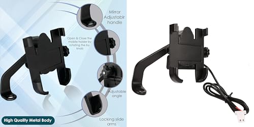 Generic - حامل يثبت على مقود الدراجة فيرسون 2.0 بهيكل معدني دوار 360 درجة وشاحن USB للدراجات والموتوسيكلات والسكوتر يناسب جميع الموبايلات من اوترويز (أسود)