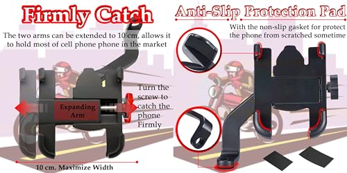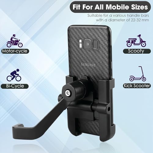 - 【متين وخفيف الوزن】المادة: - خليط معدني من الألومنيوم، مقاوم للحرارة والتآكل، ومقاوم للاشتعال، عامل أمان عالي جدًا. الهيكل المعدني لحامل الموبايل متين، مما يضمن قدرته على تحمل الاهتزازات والصدمات أثناء الركوب. على الرغم من هيكله القوي، إلا أنه خفيف الوزن، مما يجعله سهل الحمل.