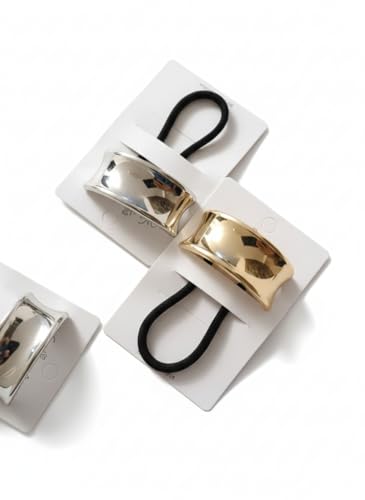 Generic - ربطات شعر بونيتيل معدنية، ذهبي وفضي، قطعتين، تصميم منحني عصري، مطاط مرن، مناسبة لجميع أنواع الشعر