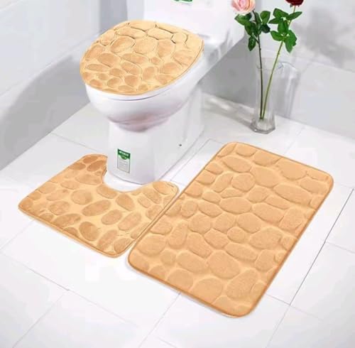 Generic - جيني طقم حمام بابل من 4 قطع، اسود، فرو صناعي فائق النعومة مع ظهر مانع للانزلاق، يتضمن بساط حوض وسجادة باب وغطاء مقعد المرحاض وغطاء للمرحاض (بيج)