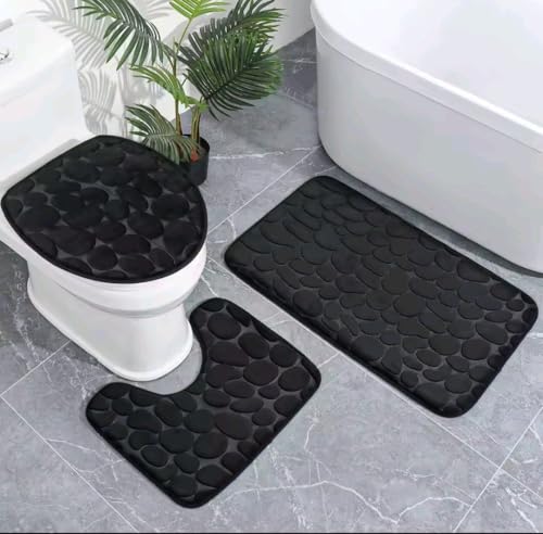 Generic - جيني طقم حمام بابل من 4 قطع، اسود، فرو صناعي فائق النعومة مع ظهر مانع للانزلاق، يتضمن بساط حوض وسجادة باب وغطاء مقعد المرحاض وغطاء للمرحاض (اسود)