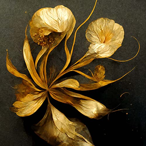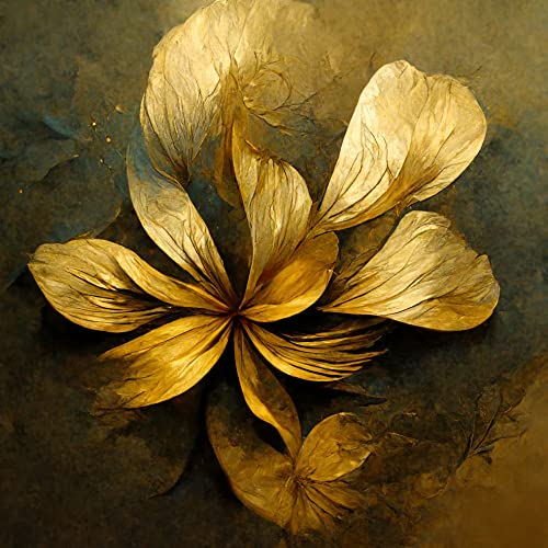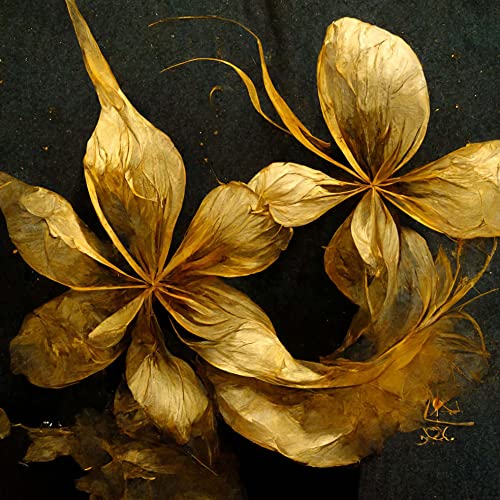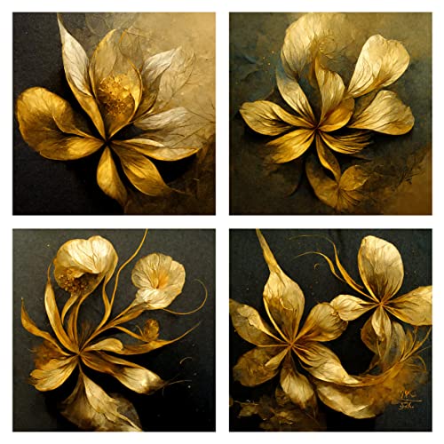 - تابلوه قماش برسمة فنية شكل زهور تجريدية ذهبية، بتصميم فن فريد من نوعه، مجموعة من 4 قطع