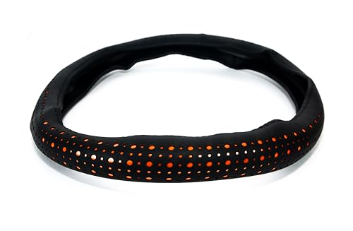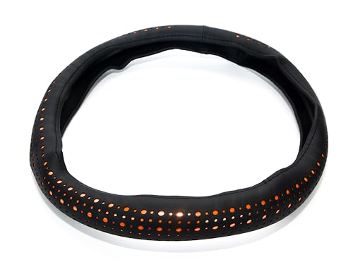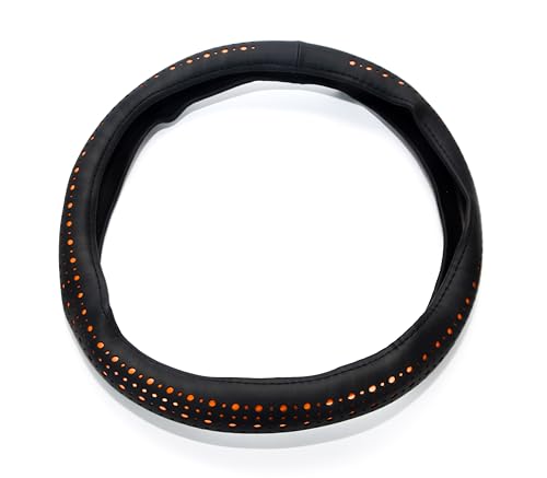 Generic - غطاء وواقي طارة دركسيون للسيارة، ملحق سيارة شامل للسيارات المتنوعة، غطاء طار دركسيون من الجلد والمايكروفايبر بتصميم رياضي مزود بمسامات للتهوية - لون أسود/ برتقالي