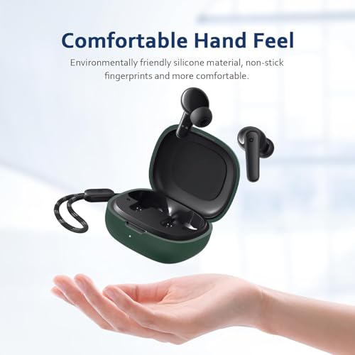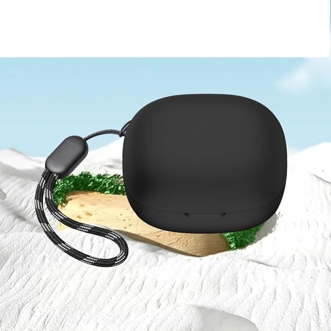 Generic - جيني جراب سيليكون R50i مقاوم للغبار مع سلسلة مفاتيح لسماعات ايربودز متوافق سماعات انكر (اسود)