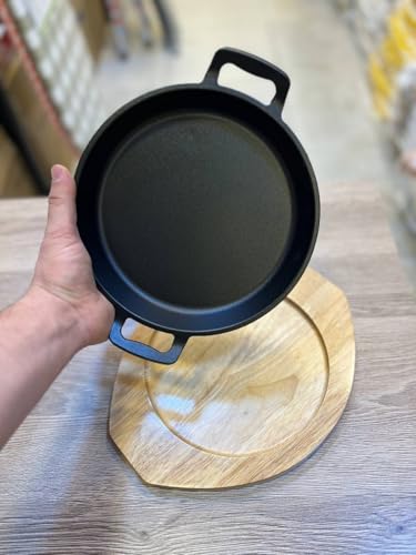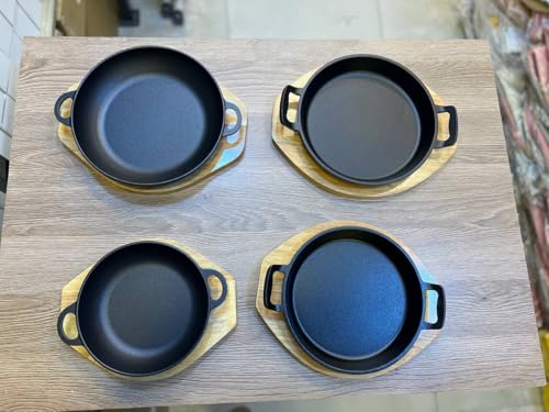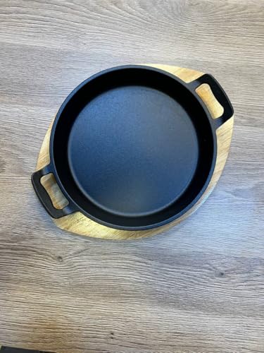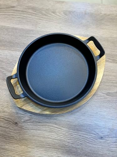 Generic - جيني مقلاة من الحديد المصبوب 19 سم مع قاعدة خشبية، مطلية غير لاصقة، مقابض مزدوجة، صينية تقديم تحتفظ بالحرارة لاطباق الازيز