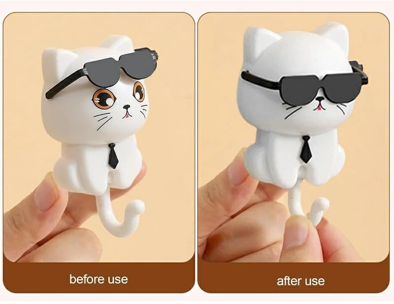 - - 【تصميم متداخل】: خطاف المعاطف بشكل قطة هو خطاف مبتكر يحتوي على تصميم متداخل مخفي. باستخدام هذا الخطاف، ستقوم قطة صغيرة لطيفة بحمل نظارتك الشمسية. ممتع.