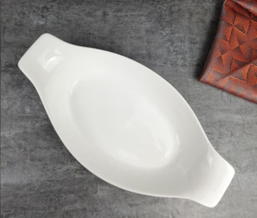 Generic - طبق لازانيا من السيراميك آمن للاستخدام في الميكروويف والفرن، مقاس 16 × 32 سم، لون أبيض