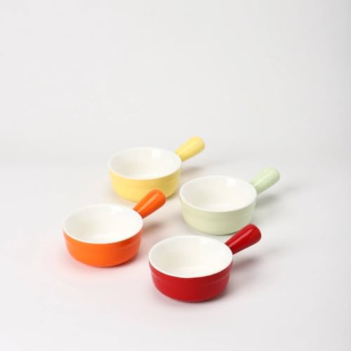 • مجموعة متعددة الاستخدامات: مجموعة من 4 أوعية شوربة بصل فرنسي من السيراميك بألوان متعددة نابضة بالحياة - أصفر وبرتقالي وأحمر وأخضر فاتح، مثالية للشوربة واليخنات والوجبات الخفيفة.